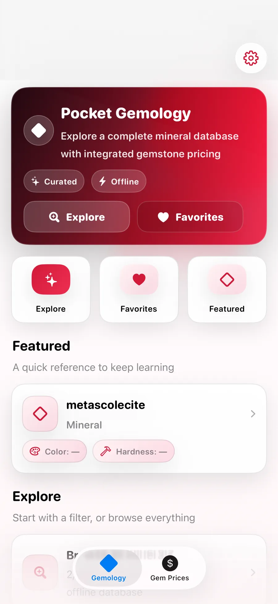 The app is organized around two focused modes: Gemology for reference and identification, and Gem Prices for per‑carat pricing rows. Together, they cover the questions you ask most often.